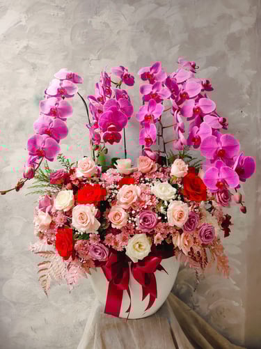 Maruti Floris makes beautiful Flower Arrangements, Hampers, and Gifts, to fulfil the needs of customers for various occasions such as: Baby New Born, Birthday, Valentines, Graduation, Engagement, Wedding, Happy Anniversary, Season Greeting, Eid, Christmas, Condolence.
